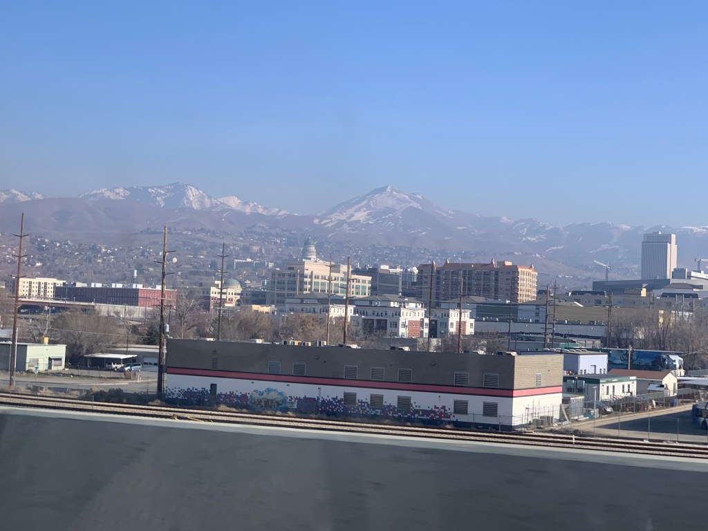 Sailing through Salt Lake City at 12:05 pm – the top of the capitol building is in the center of the photo