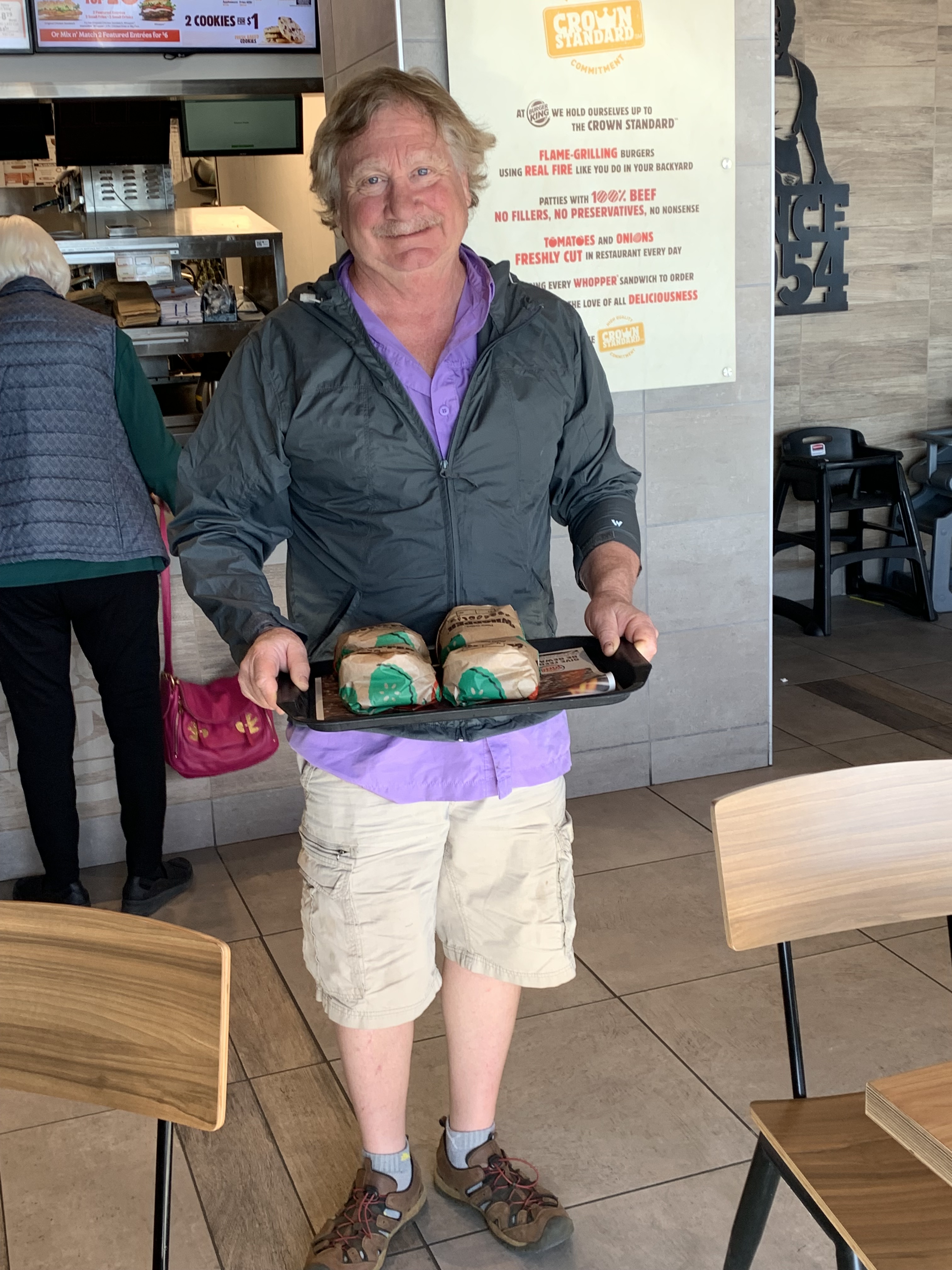 At 1:45 pm we pull off the freeway at Malad and hit the Burger King. They are running a ‘buy-one-get-one-free’ special on whoppers. Four whoppers for 12 bucks! Eric buys.