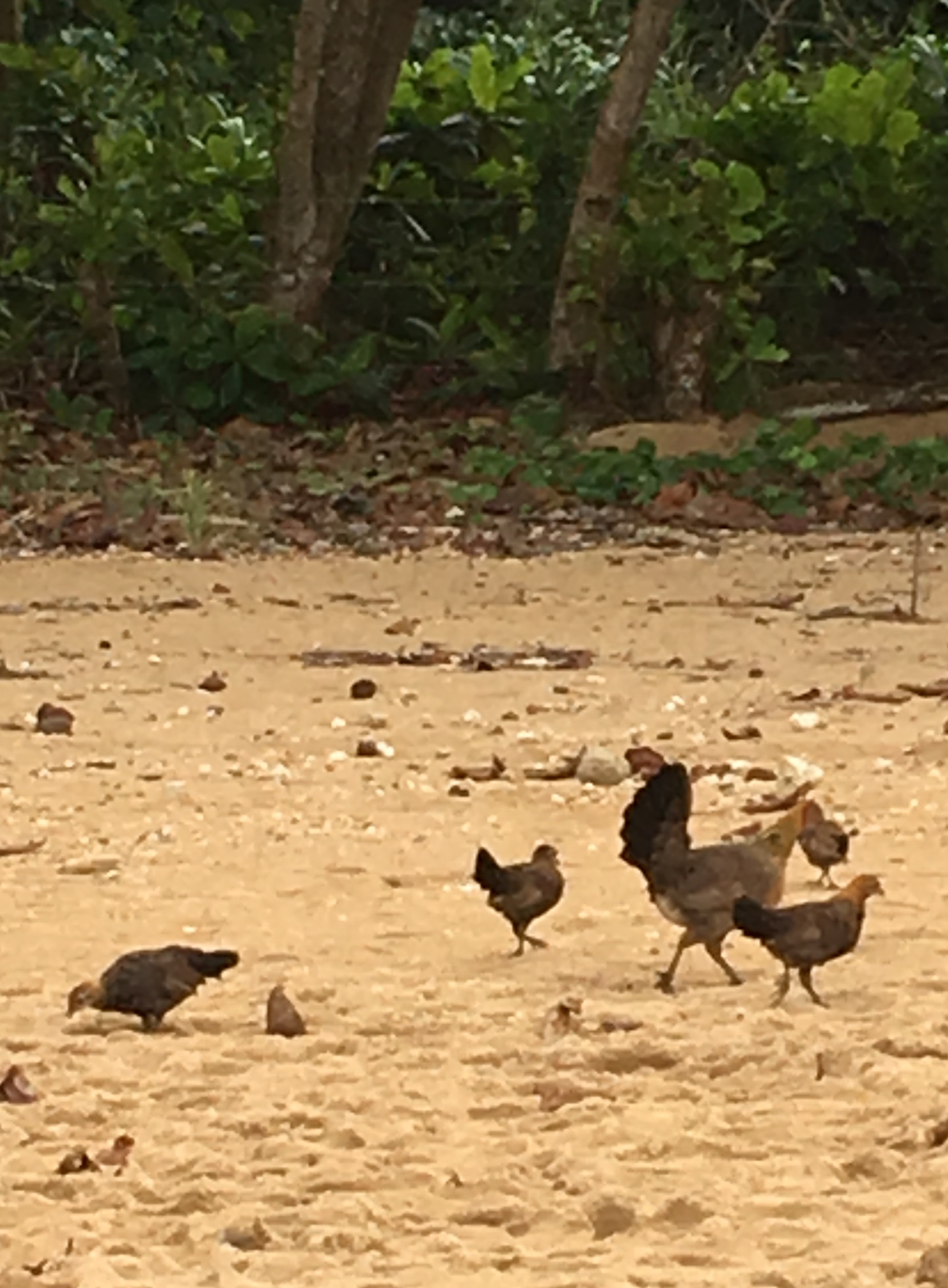 We’re pretty much silent through the hour drive to the airport, dropping off the rental car, riding the shuttle to the airport entrance, when Megan blurts out, “Hey, look at that rooster!” We all share a laugh over seeing one last feral rooster by the front entrance to the airport terminal.